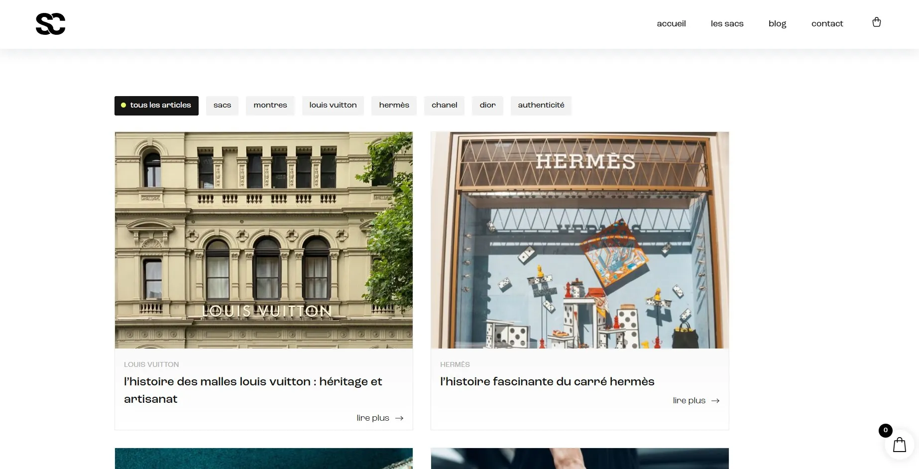 Le site est optimisé pour le référencement naturel grâce à une structure technique soignée et une organisation claire des contenus. Un blog intégré permet de créer régulièrement des articles pour améliorer la visibilité, partager l’univers du luxe et renforcer l’autorité de Scandaleusement sur le marché des sacs d’occasion.